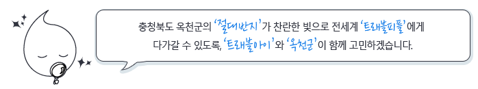 옥천이 가진 아련한 향수는 오늘날 현대인에게 점점 구체화 되고 있다. 우리나라 사람이라면 누구나 알고 있을 법한 정지용의 시 ‘향수’에서 묘사된 것처럼 아름다운 곳, 편히 쉬다 갈 수 있는 곳이라는 이미지가 더해지며 옥천을 찾는 이가 갈수록 늘어나고 있다. 그런 점에서 옥천의 슬로건인 ‘아름다운 유혹, Your 옥천’은 옥천이 모두에게 활짝 열려 있다는 점을 다시 한 번 강조한다고 할 수 있다.